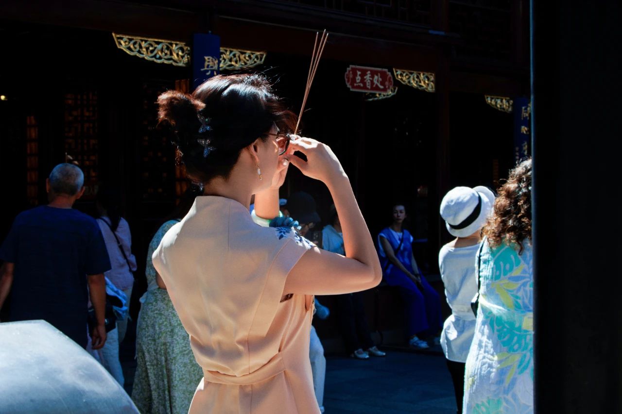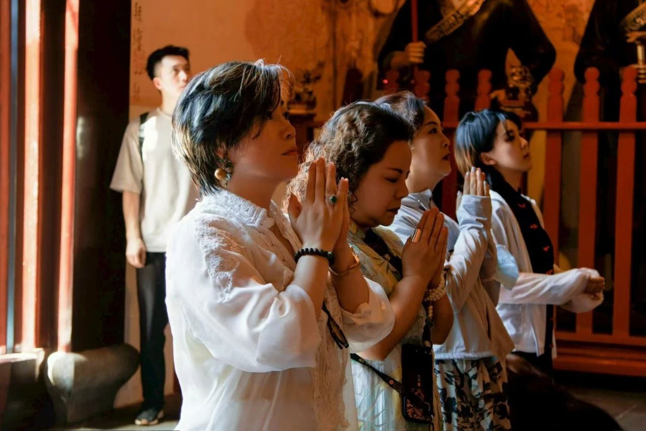 在城隍庙的袅袅香火中,红颜姐妹执香祈愿,一念一心,与百年庙宇的沉静气韵悄然相融。随后步入豫园160年老宅“相生”店内,红颜会总会副会长、吉祥衣家主理人、相生主理人邓春旭女士,以十六年创业路诠释“以文化立心,以信念破局”。